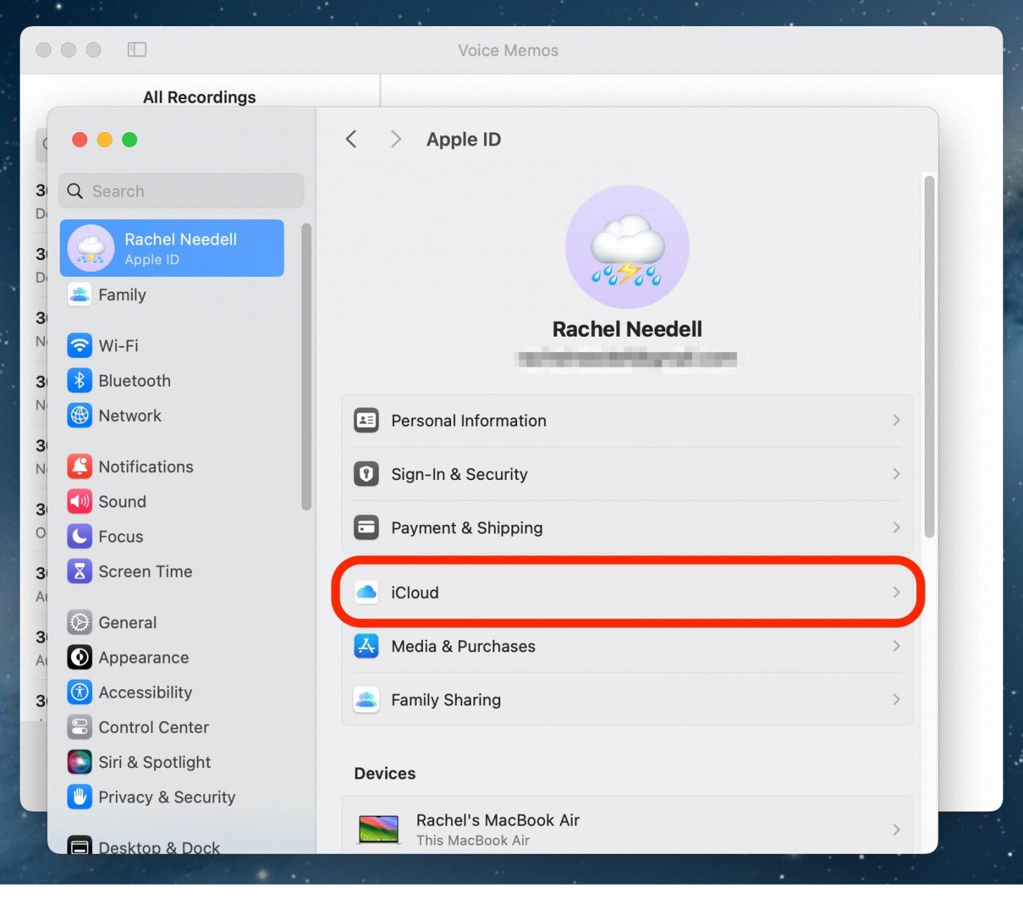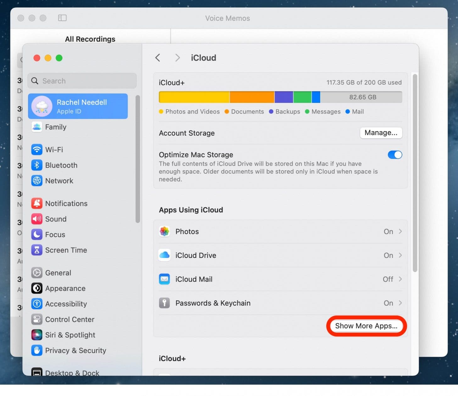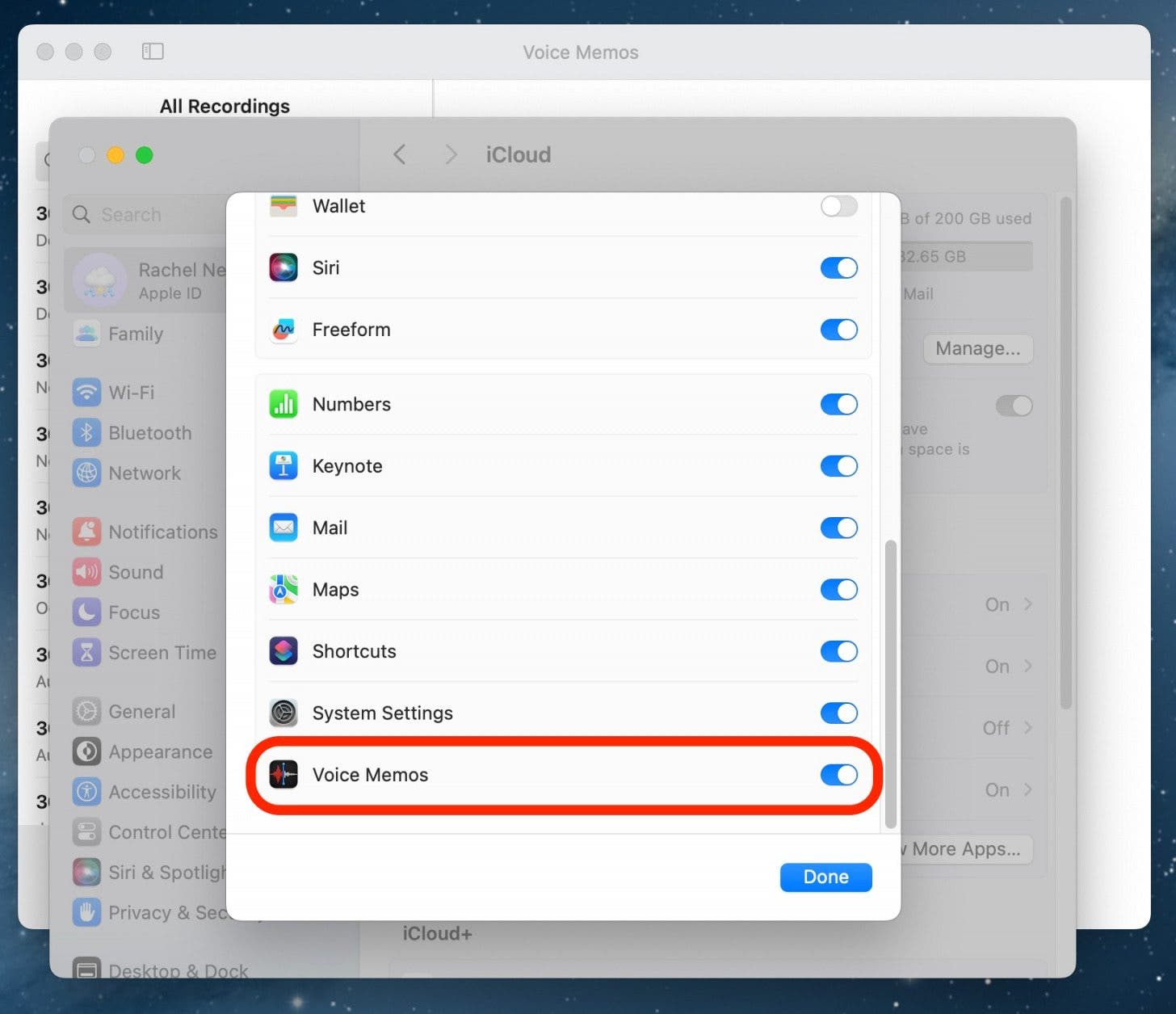 - 接下來,您需要在 Mac 上執行相同的操作。如果您之前沒有在 Mac 上使用過語音備忘錄,請先打開語音備忘錄。如果您之前在 Mac 上使用過語音備忘錄,請跳至下一步。點擊使能夠啟用語音備忘錄的 iCloud 同步。