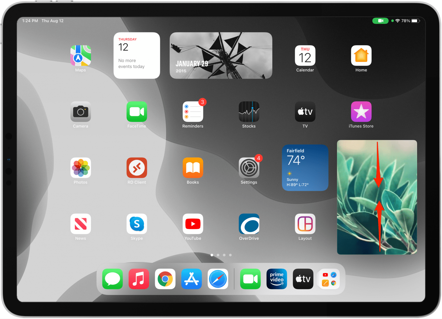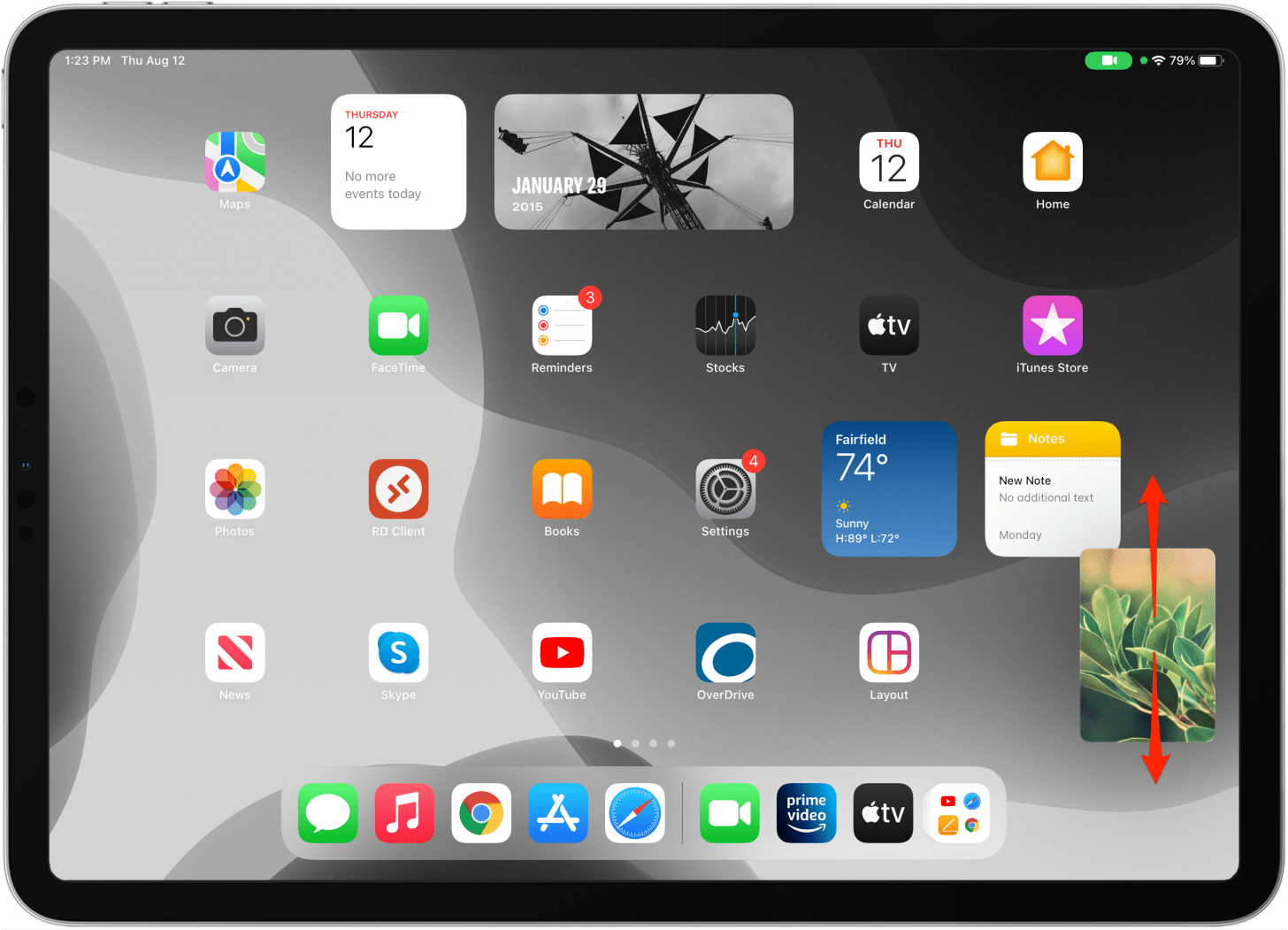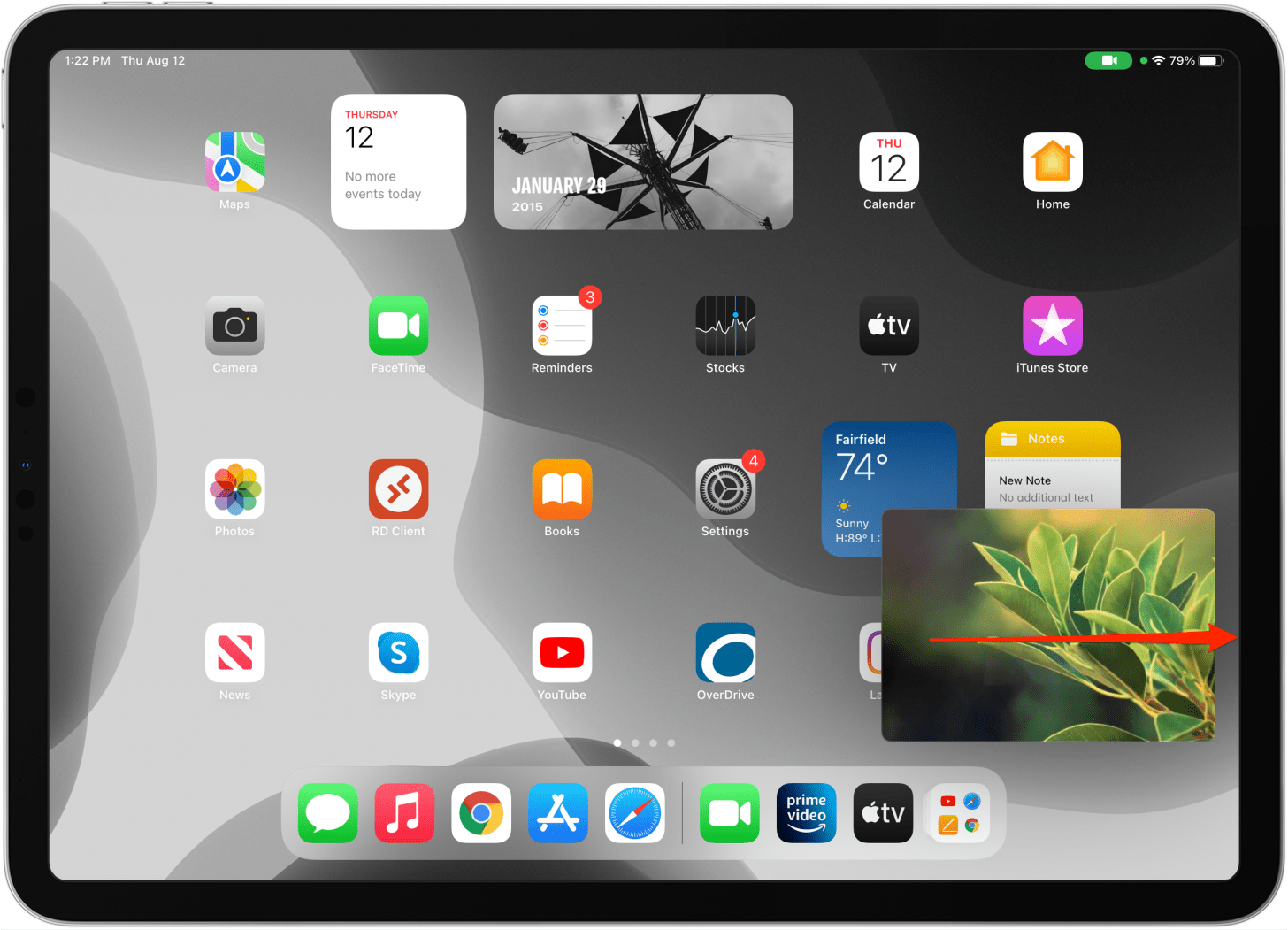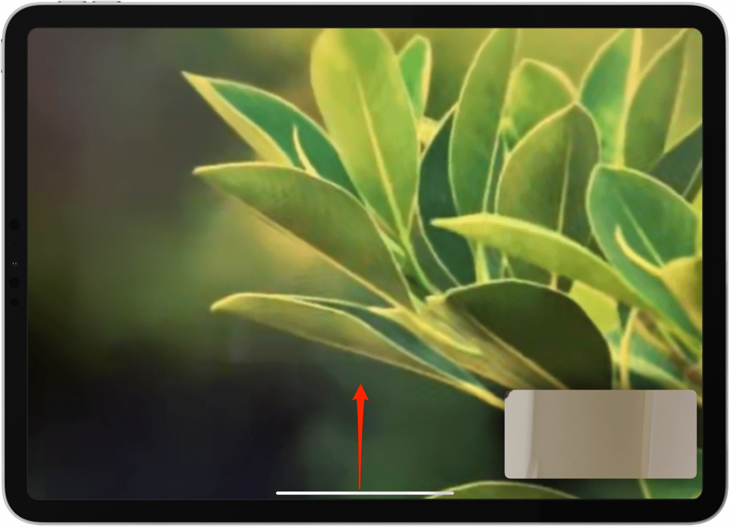 - 在兼容的視頻播放器中觀看視頻或在 FaceTime 通話期間,從屏幕底部向上滑動以打開畫中畫。執行此操作時請確保您的視頻正在播放。如果您向上滑動暫停的視頻,您只需關閉應用程序或打開應用程序切換器即可。