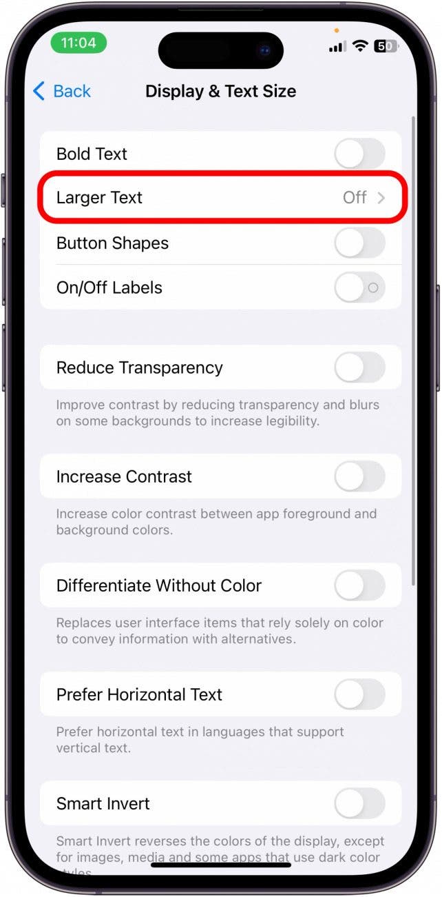 這就是如何啟用隱藏的觸摸放大功能,使主屏幕頂部的小圖標更容易看到。我希望這有幫助!請記住,要啟用這些較大的狀態欄圖標,iPhone 上的其余文本也會放大。