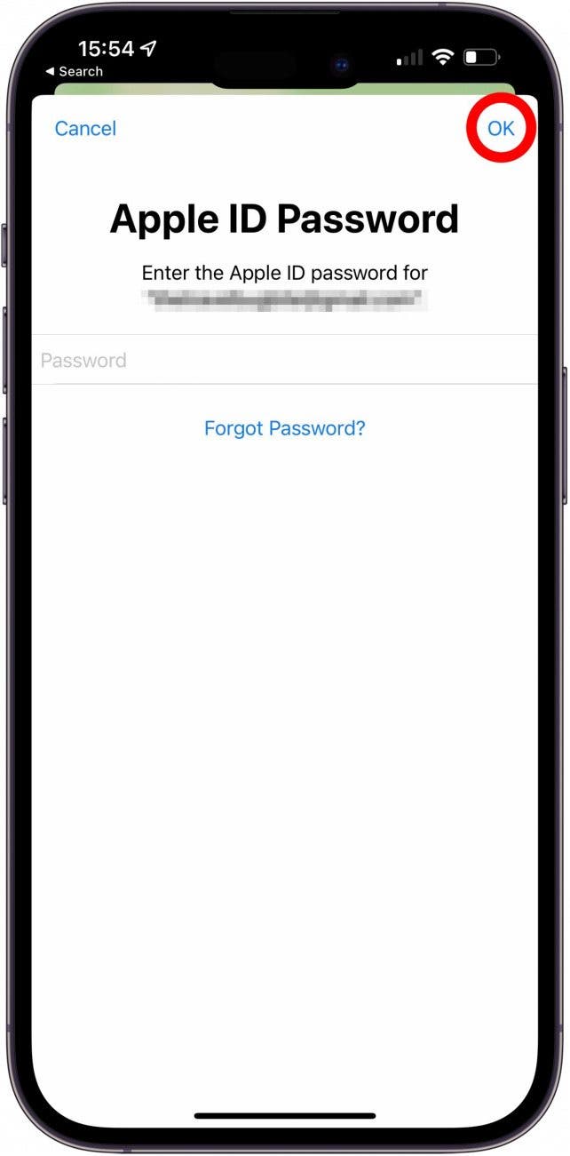 - 您必須輸入 Apple ID 密碼並輕點好的。