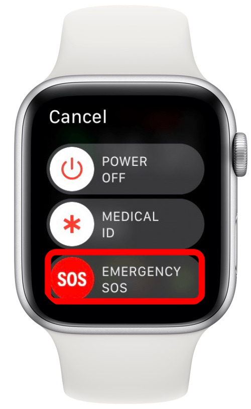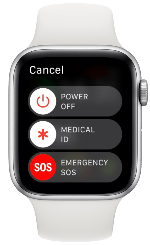 - 將彈出一個菜單,其中包含兩個或三個選項,具體取決於您在 Apple Watch 上設置的內容。其中包括關機、醫療 ID 和緊急求救。
