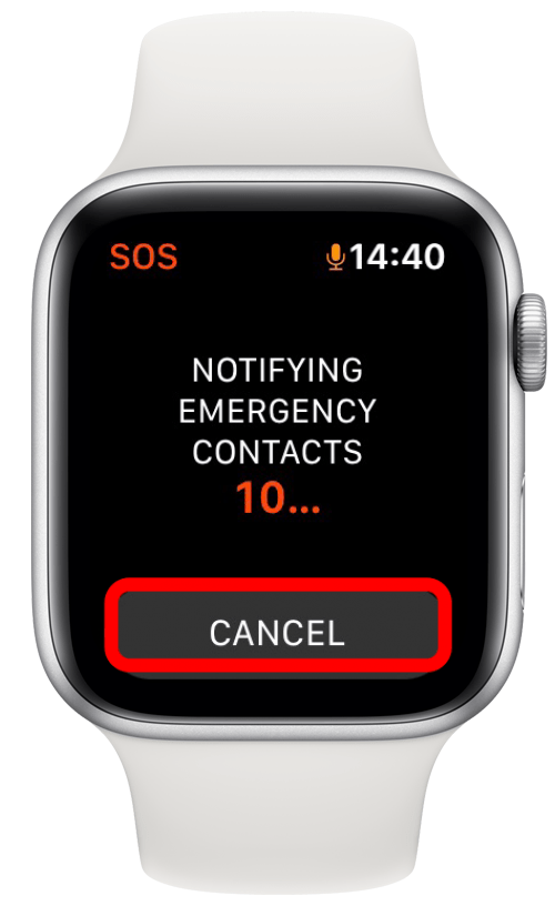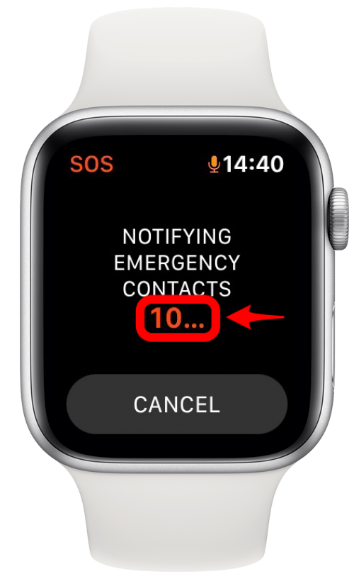 - 按住側邊按鈕即可激活倒計時;當電量用完時,將呼叫緊急服務。您還可以滑動“緊急求救”來更快地呼叫他們。