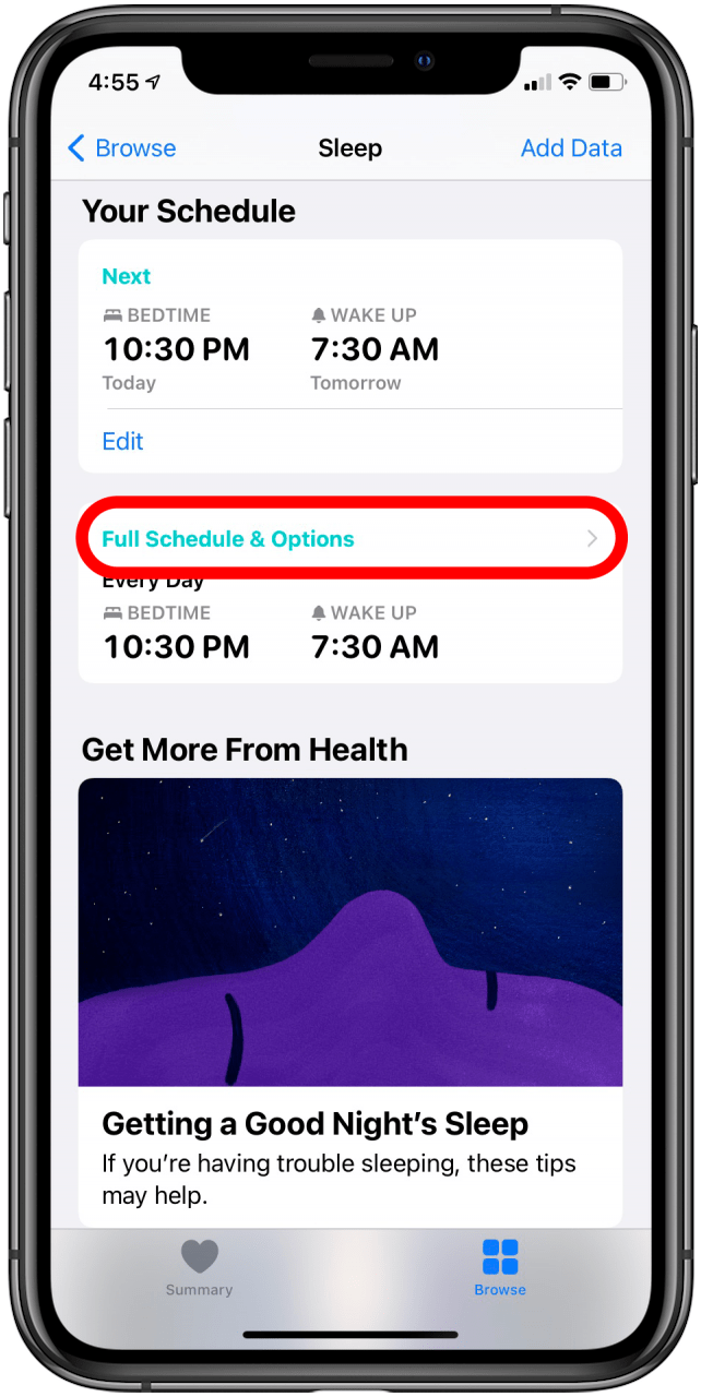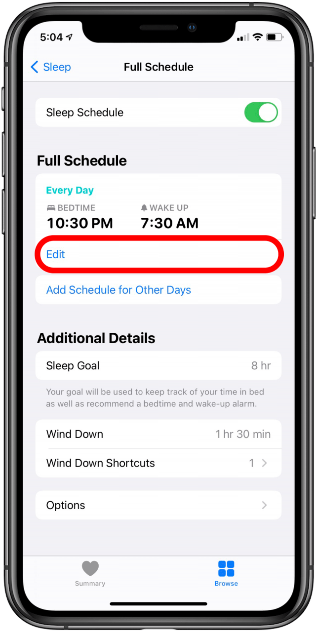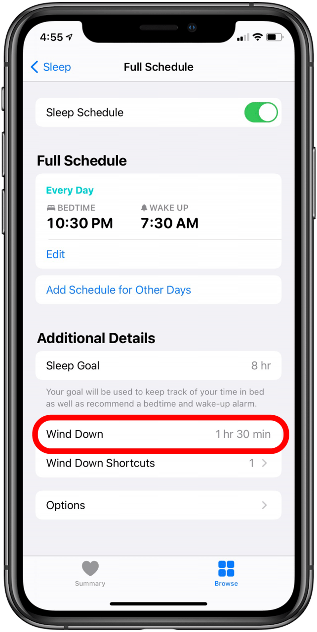 如果您已經嘗試了所有這些方法,但仍然不喜歡手機上有睡眠時間表,您可以完全刪除睡眠時間表。為此: