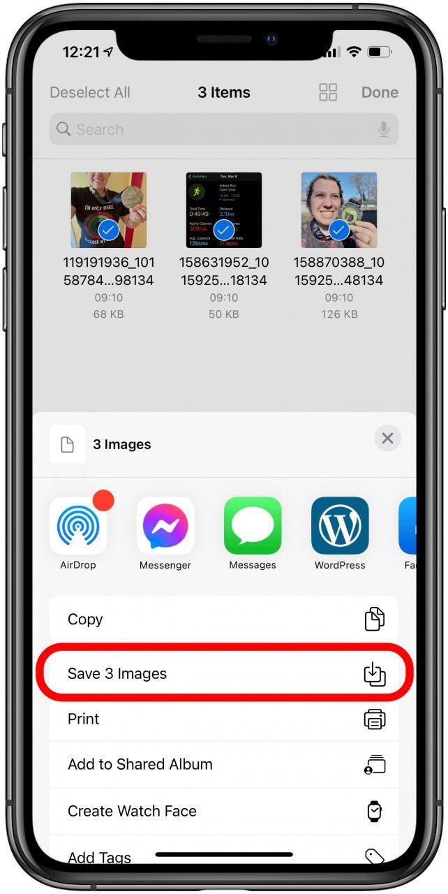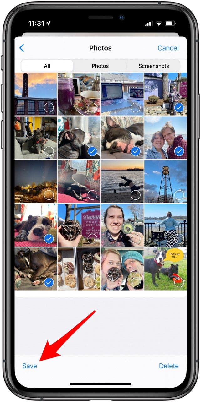 - 現在您可以選擇任意數量的圖像。點擊您要保存的每張圖像。點擊後,角落裡會出現一個帶有復選標記的藍色圓圈,表示已選擇圖像。