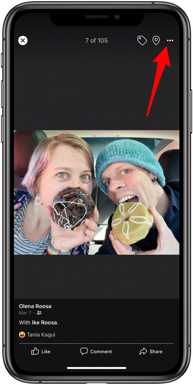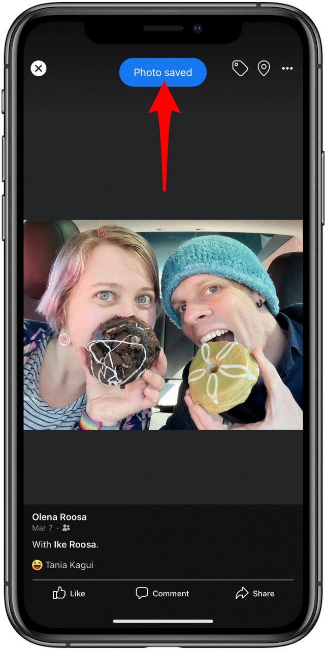 - 從臉書應用程序,找到您要保存的照片。點擊照片。