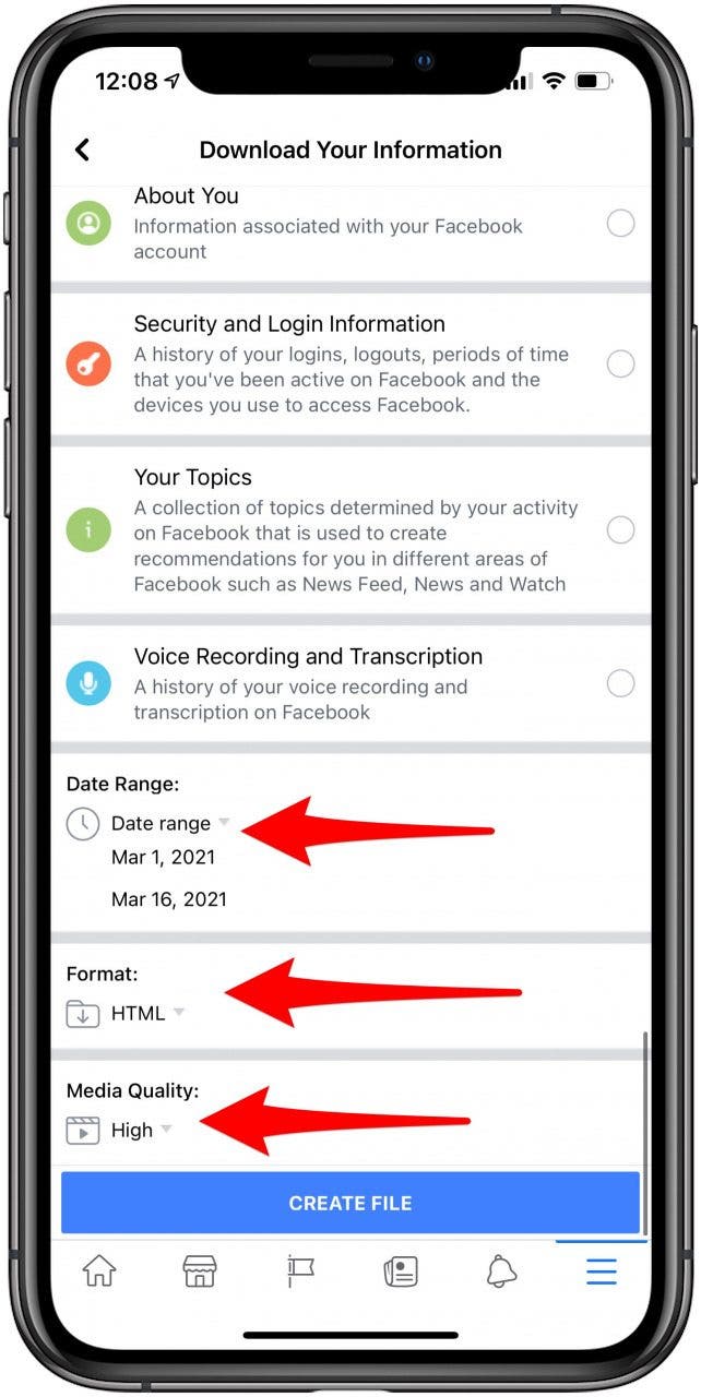 - 向下滾動並選擇照片文件的日期範圍、格式和質量。我建議將媒體質量設置為“高”。