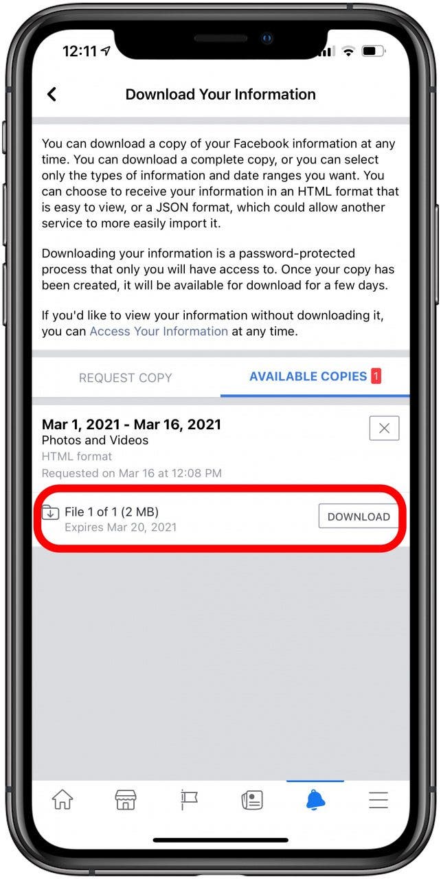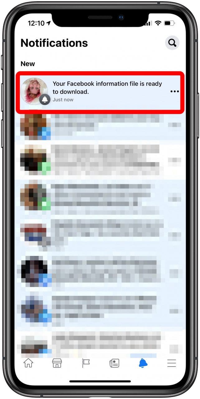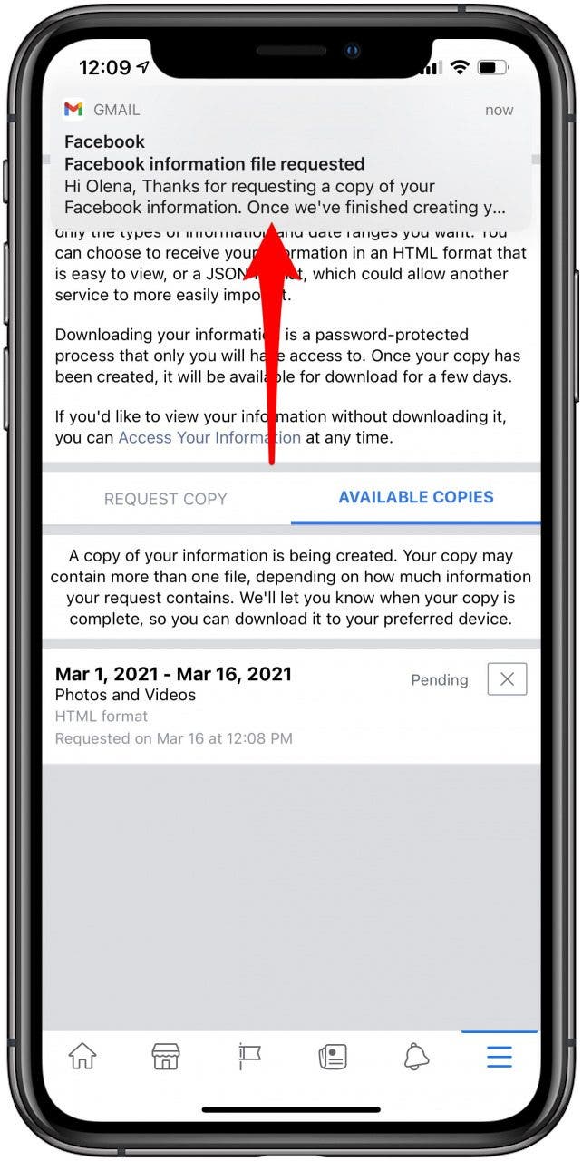 - 最終,您將收到 Facebook 通知,通知您下載已準備就緒。點擊通知。