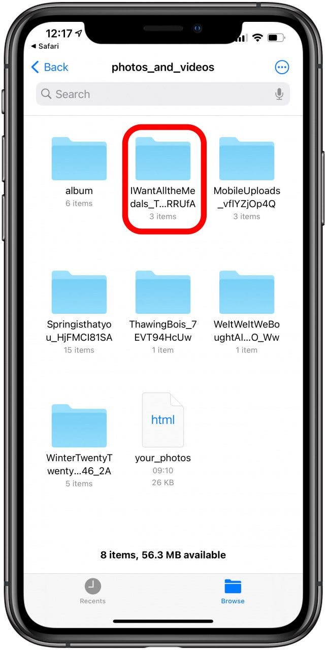 - 前往照片和視頻。您將看到幾個帶有您的相冊名稱的文件夾。