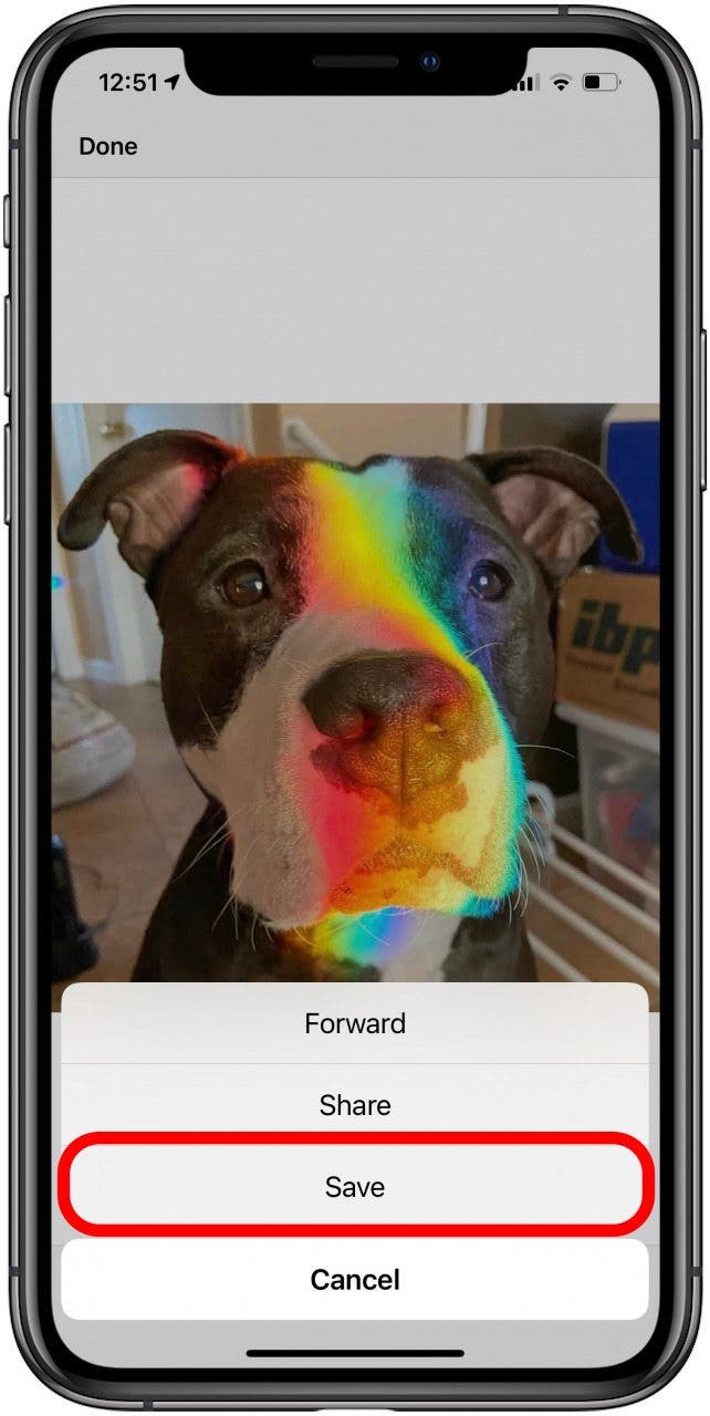 - 選擇保存圖像將照片保存到您的 iPhone 上。
