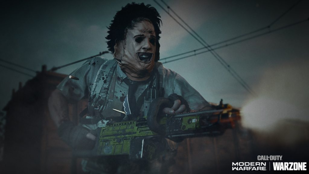動視公司扮演《德州電鋸殺人狂》中可怕的人皮臉,在戰區中奔跑。